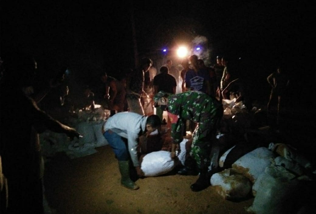 Menurut Kapten Said Muhammad, TNI bersama masyarakat berjuang keras membangun tanggul darurat, walaupun berisiko terhadap keselamatannya sendiri akibat derasnya air di tepian sungai itu, sejak Rabu malam hingga Kamis dini hari.