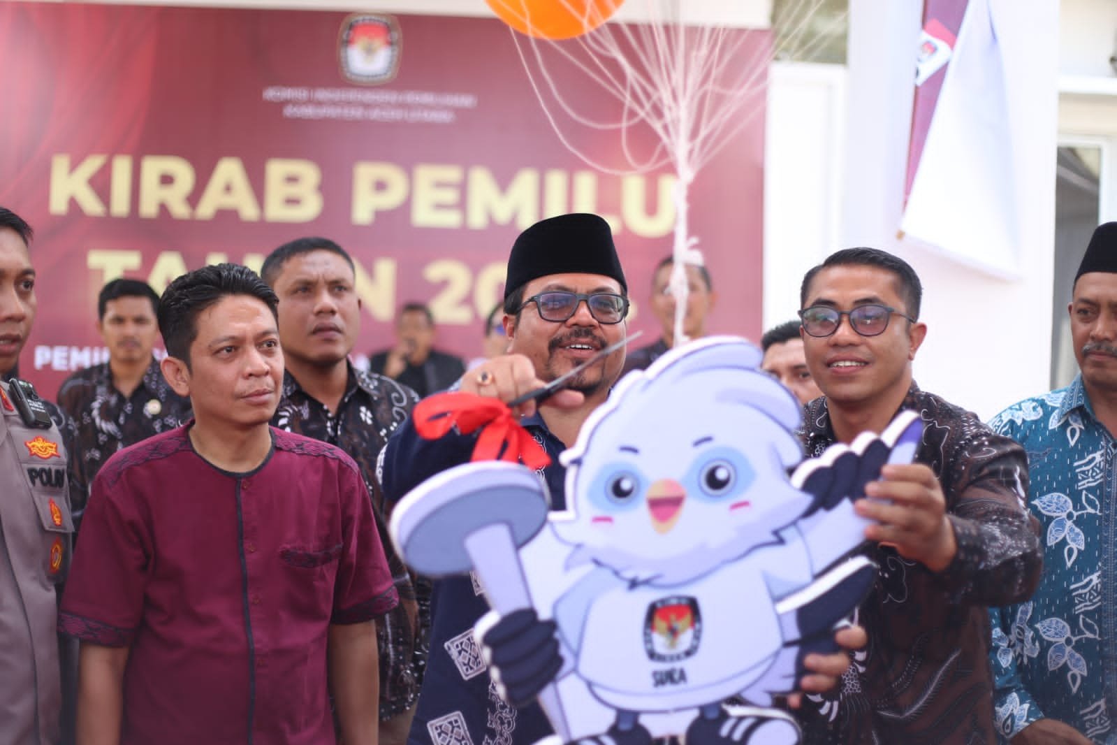 Pj. Bupati Azwardi bersama Ketua KIP Aceh Utara, Zulfikar, S.H., Ketua KIP Lhokseumawe Mohd. Tassar, Ketua DPRK Aceh Utara Arafat, perwakilan Panitia Pengawas Pemilihan (Panwaslih) kabupaten setempat serta sejumlah petugas keamanan secara bersamaan juga melepaskan balon sura sulu ke udara sebagai tanda pembukaan Kirab Pemilu 2024.