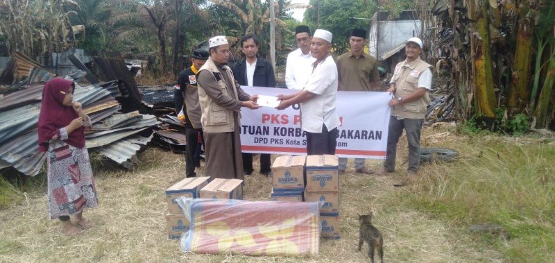 SUBULUSSALAM – Partai Keadilan Sejahtera (PKS) Kota Subulussalam menyalurkan untuk korban kebakaran di Jalan Pelawis, Desa Subulussalam, Kecamatan Simpang Kiri dan Pesantren Nurul Aqlam Penanggalan, Selasa, 23 Mei 2023.