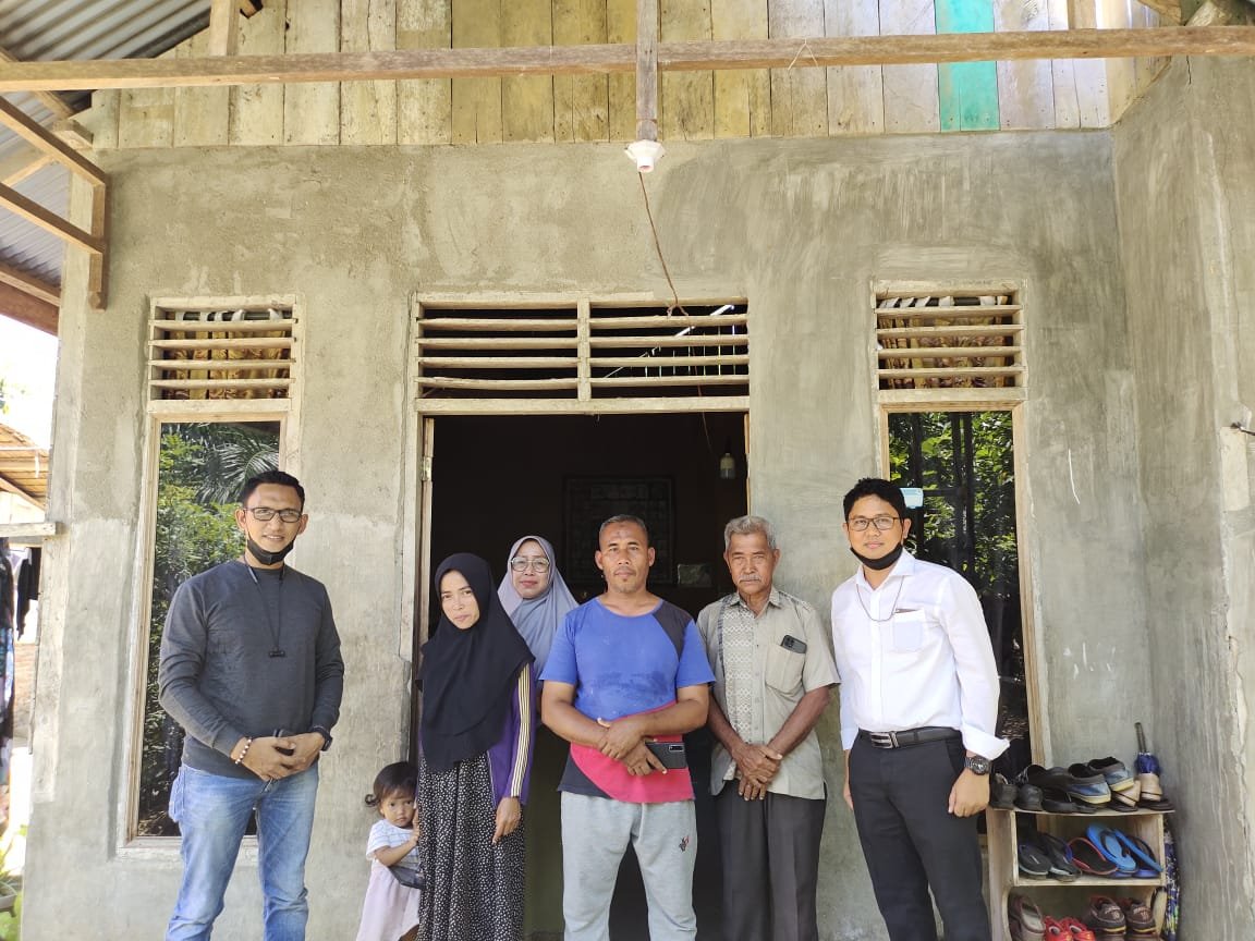ACEH UTARA – Tim Yayasan Baitul Mal (YBM) PLN Unit Induk Wilayah (UIW) Aceh mendatangani rumah orang tua Al-Walid MZ, anak berprestasi, di Gampong Meunasah Buket, Kemukiman Buloh Blang Ara, Kecamatan Kuta Makmur, Kabupaten Aceh Utara, Senin, 11 Oktober 2021.