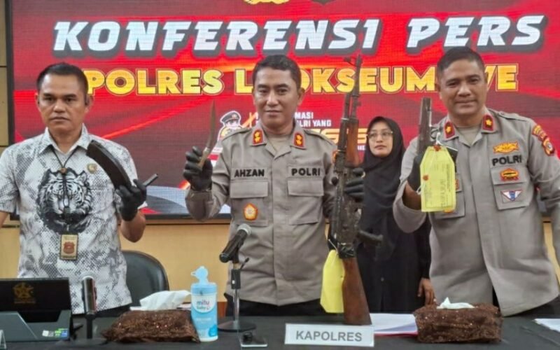 LHOKSEUMAWE – Tim Satreskrim Polres Lhokseumawe berhasil mengungkap kasus kepemilikan senjata api ilegal yang diduga terkait rencana aksi keributan di Simpang Kandang, Kecamatan Muara Dua, Lhokseumawe, pada 25 Desember 2025.