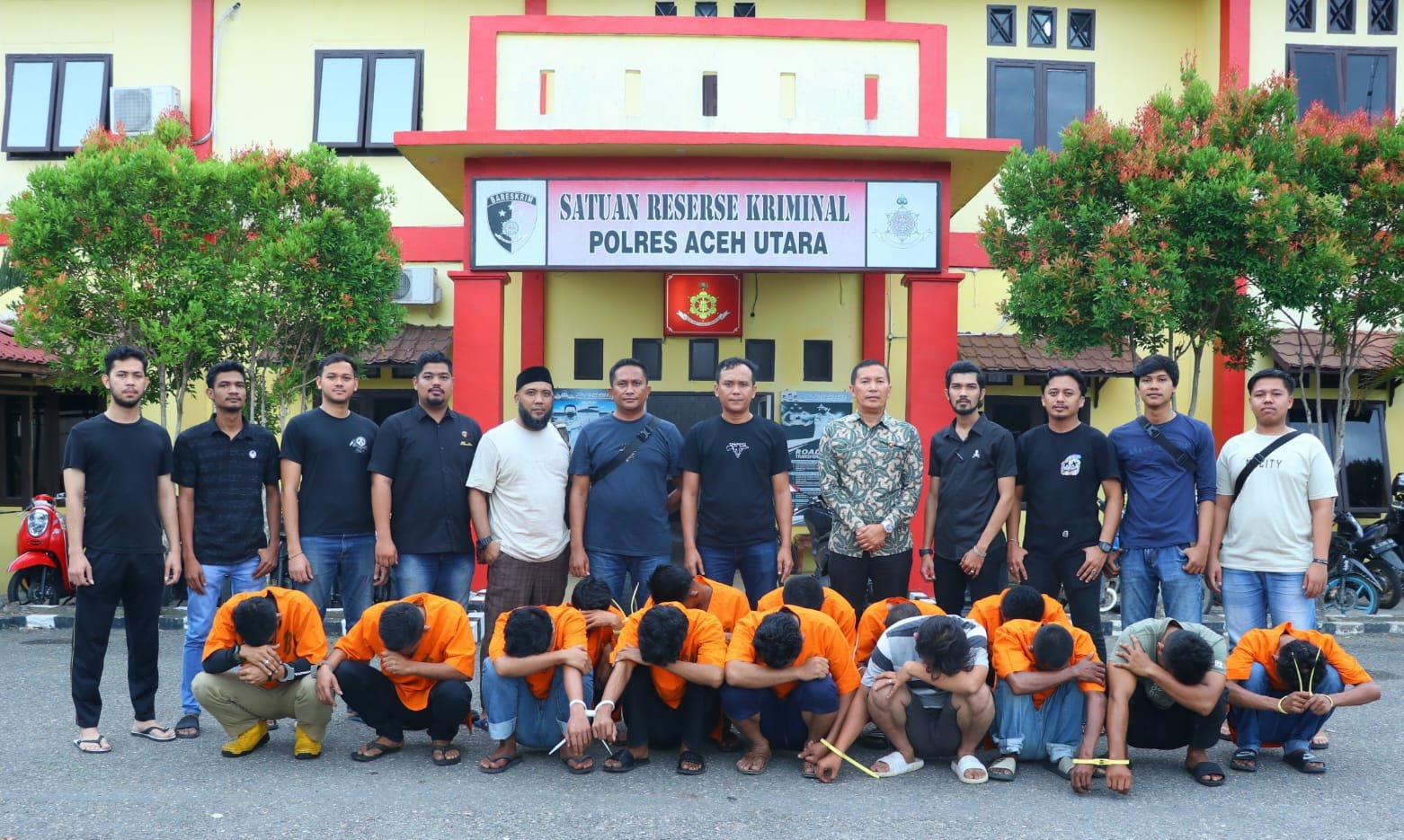 Keempat belas tersangka itu berinisial ES (50) warga Cot Girek, AC (34) warga Syamtalira Aron, MH (28) dan MSN (25) warga Baktiya, ZR warga Baktiya Barat, AF (30) warga Seunuddon, BUL (23) dan Z (22) warga Pantonlabu, MR (30), MY (38), dan MZR (42) warga Tanah Luas, ML (29), RI (40), dan Z warga Lhoksukon.