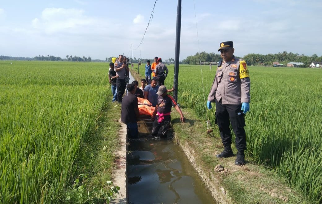 Sebelumnya diberitakan, warga Gampong Raya Palue, Kecamatan Simpang Tiga, Kabupaten Pidie, dihebohkan dengan penemuan mayat laki-laki di saluran air persawahan (Lueng Baro), Selasa, 13 Februari 2024, pagi.