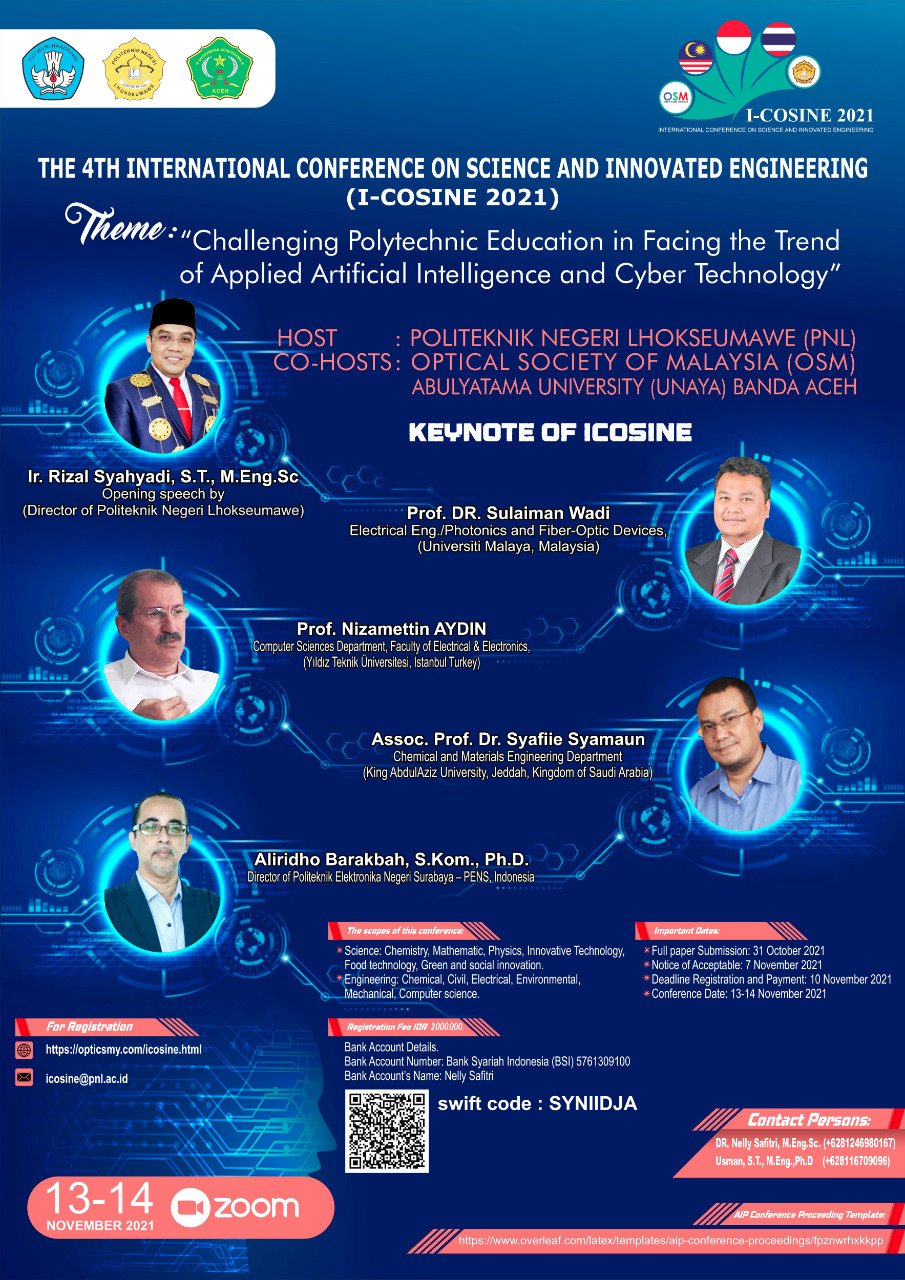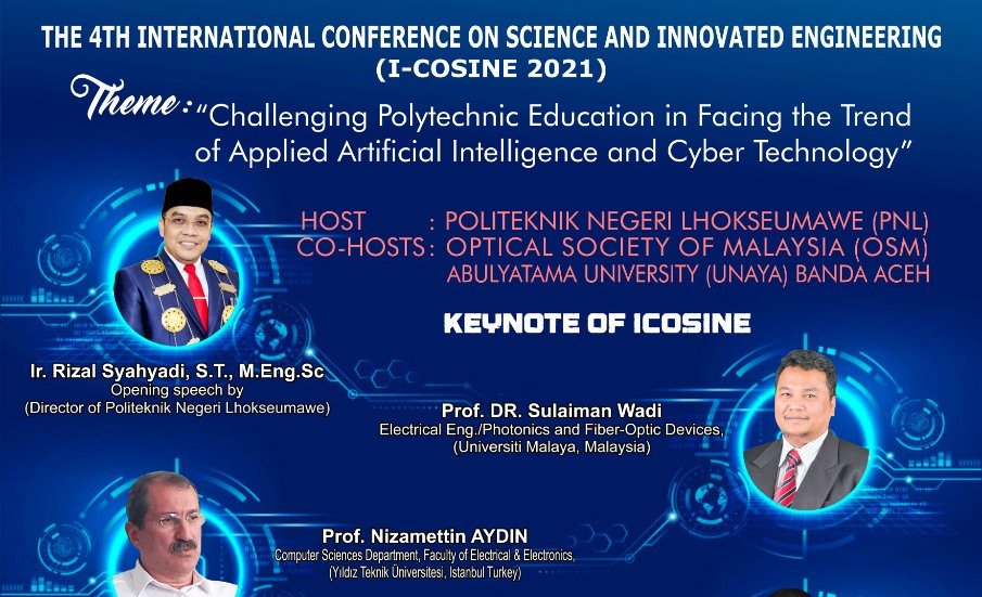 LHOKSEUMAWE – Politeknik Negeri Lhokseumawe (PNL) akan menggelar International Conference on Science and Innovated Engineering (ICOSINE/Konferensi Internasional Bidang Sains dan Rekayasa Inovasi) ke-4 tahun 2021.