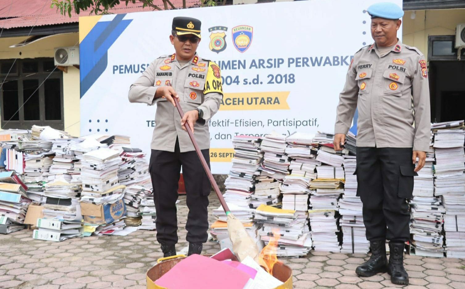 Kegiatan itu dipimpin Kapolres Aceh Utara, AKBP Nanang Indra Bakti, didampingi Kasi Keuangan Polres, Bripka M. Yusuf, serta personel keuangan lainnya. Pemusnahan dokumen arsip tersebut dilakukan dengan metode pembakaran.