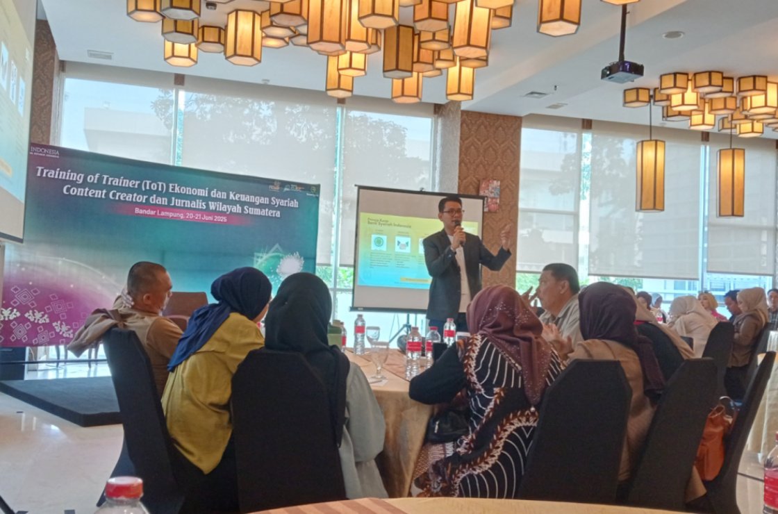 Training of Trainer (ToT) Ekonomi dan Keuangan Syariah untuk konten kreator dan jurnalis wilayah Sumatra, di Swiss-Belhotel, Bandar Lampung, Ibu Kota Provinsi Lampung, Sabtu, 21 Juni 2025.