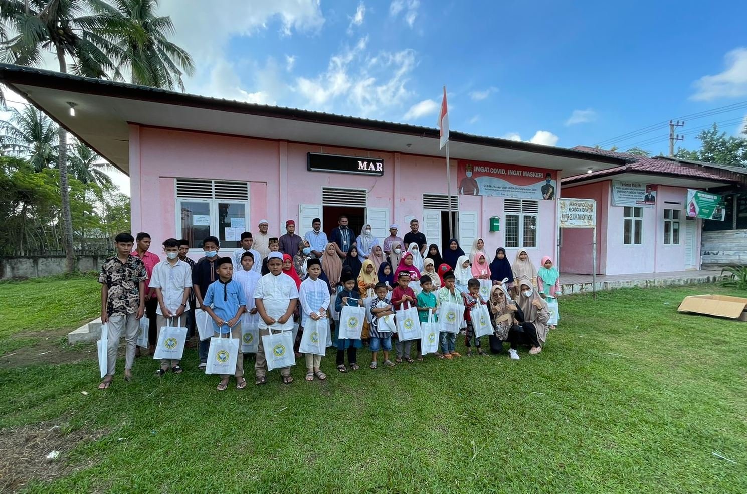 Untuk anak-anak yatim di Panti Asuhan Miftahul Jannah Tambon Tunong 150 paket, Yayasan Anak Yatim Al-Muarif Batuhat Timur 55 paket, dan Yayasan Anak Yatim Hidayatullah Cot Dua 85 paket.