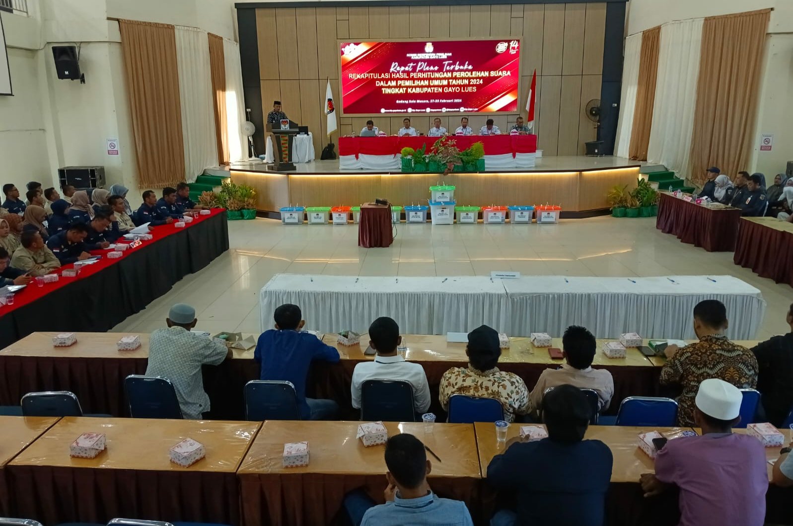 Ketua KIP Gayo Lues, Khairuddin, Selasa, 27 Februari 2024, mengatakan rapat ini terbuka untuk umum. Jika nantinya ada ketidakcocokan penghitungan, maka akan disandingkan dan disesuaikan.