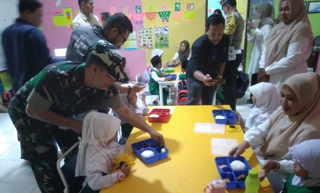 [Personel Kodim 0104/Aceh Timur membantu membagikan makan bergizi gratis kepada anak-anak di Kecamatan Peureulak, Aceh Timur, Senin, 6 Januari 2025. Foto: Penrem Lilawangsa]