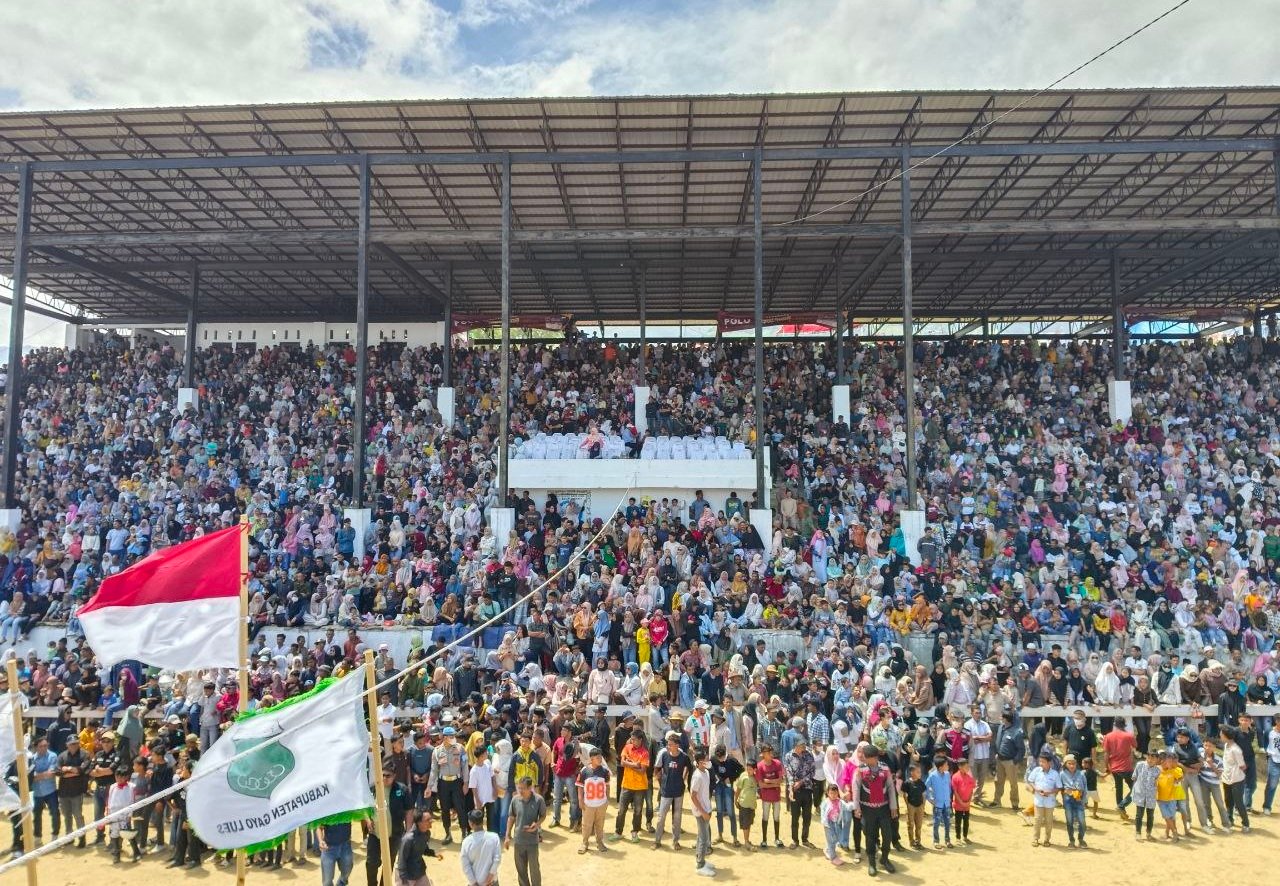 BLANGKEJEREN – Ribuan orang yang datang dari berbagai kabupaten/kota menyaksikan final pacuan kuda tradisional di Stadion Buntul Nege Gayo Lues, Minggu, 26 Oktober 2025.
