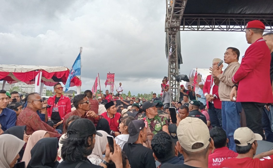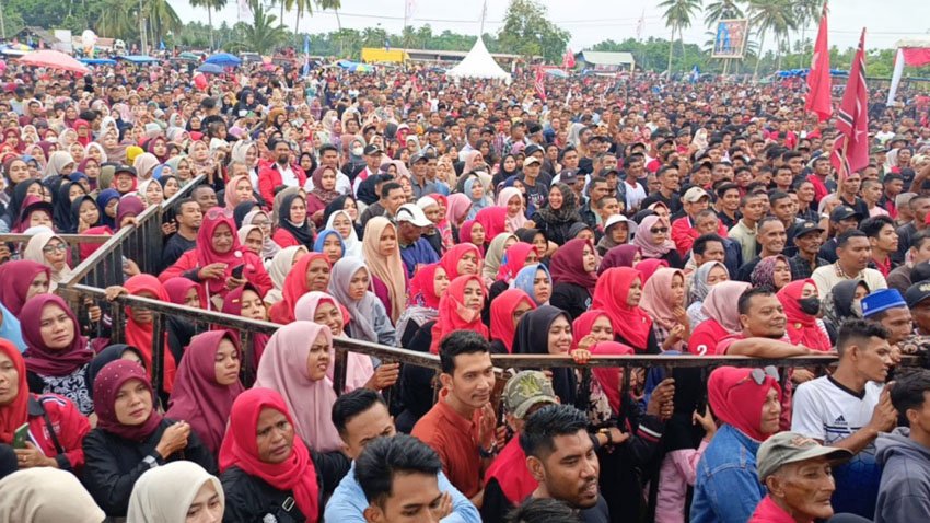 [Ribuan warga mengikuti kampanye akbar Mualem-Dek Fad dan Ayahwa-Panyang di Lapangan Sepak Bola, Syamtalira Aron, Aceh Utara, Rabu, 20 November 2024. Foto: portalsatu/Fazil]