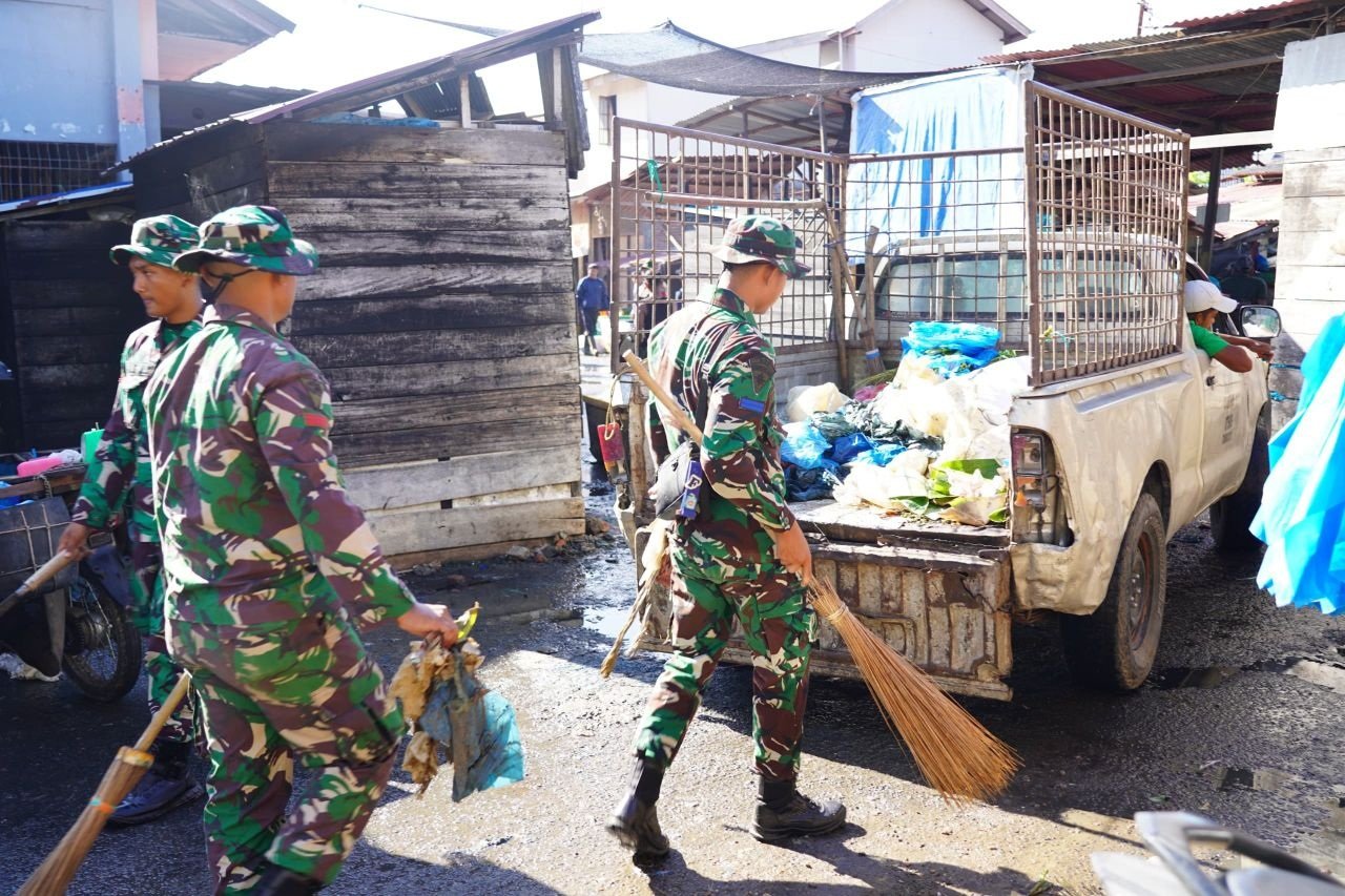 Para prajurit TNI Angkatan Darat (AD), Angkatan Laut (AL), dan Angkatan Udara (AU) tersebut juga membersihkan Pasar Tradisional Pusong Lhokseumawe.