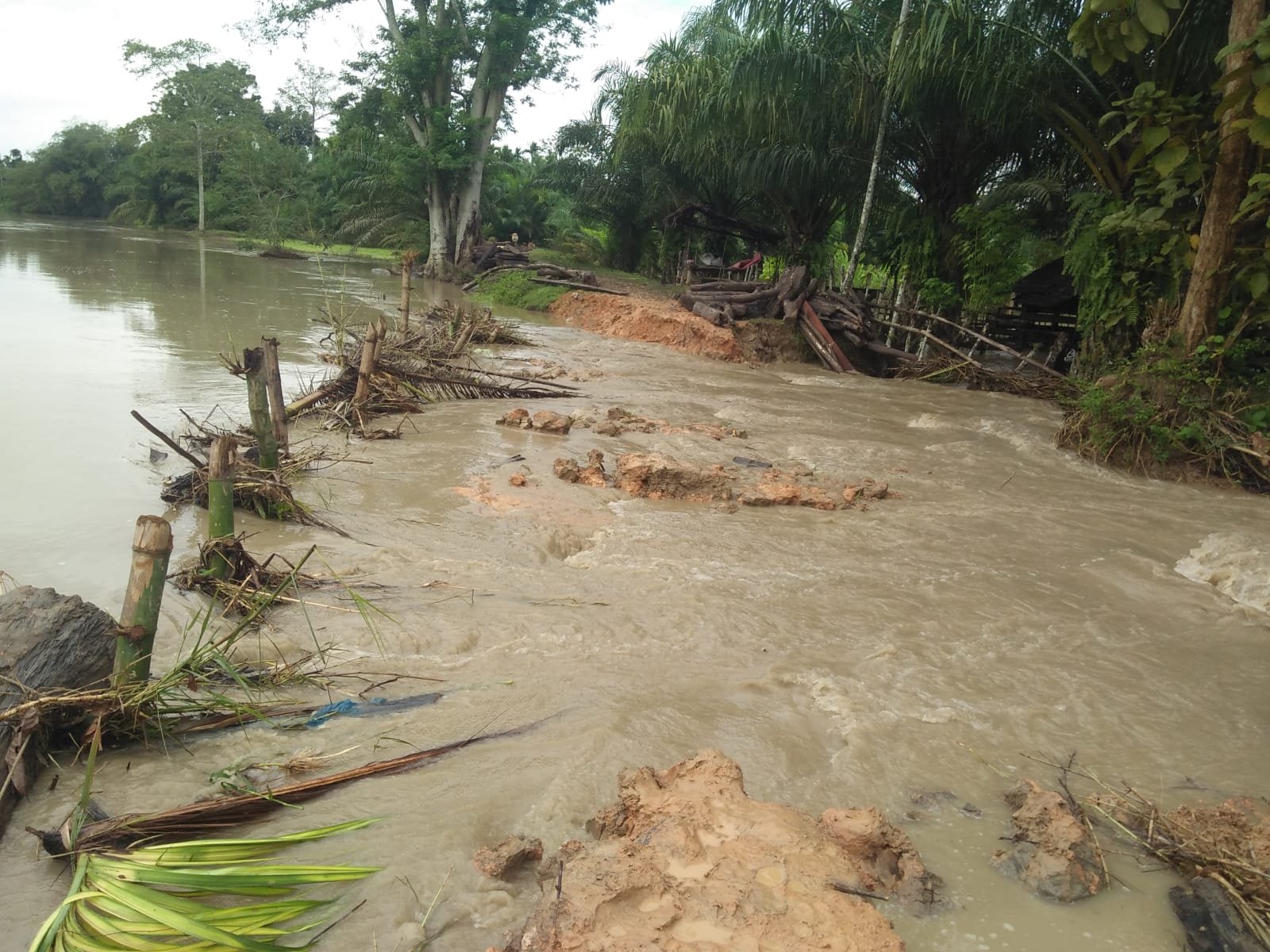 (Kondisi tanggul Krueng Peutoe di Desa Meunasah Jok KM II, Kecamatan Lhoksukon, setelah jebol. Foto: Fazil)