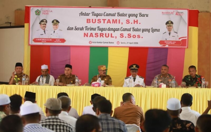 Bupati Pidie, Sarjani Abdullah, S.H., M.H., memimpin langsung prosesi antar tugas di sejumlah kecamatan. Di Kecamatan Batee, Bustami, S.H., resmi menjabat sebagai camat menggantikan Nasrul, S.Sos. Sementara di Kecamatan Padang Tiji, Khalidin, S.T., menerima amanah baru menggantikan Asriadi, S.Sos., sebagai camat.