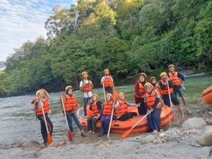 Salah seorang wisatawan, Buarna Sry Lolona (20) mengatakan ia baru pertama kali ikut bermain Arung Jeram ini Bersama teman temannya.