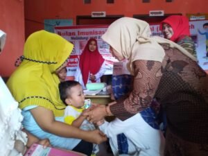 SUBULUSSALAM- Tenaga kesehatan Puskesmas Bakal Buah, Kecamatan Simpang Kiri, Kota Subulussalam memberikan pelayanan imunisasi Campak Rubella dalam Bulan Imunisasi Anak Nasional (BIAN) di wilayah Simpang Kiri, Kamis, 9 Juni 2022.