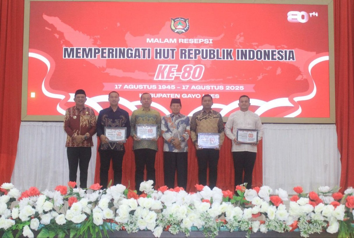Kapolres Gayo Lues AKBP Hyrowo dan Perwiranya Terima Penghargaan pada Malam Resepsi HUT ke-80 RI