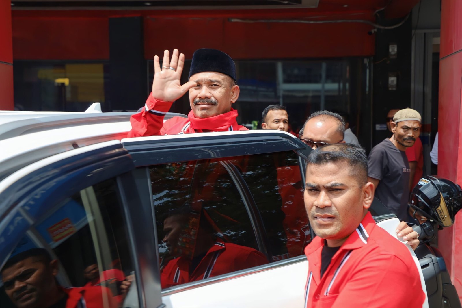 Abusyik Hadiahkan Kopiah Merah untuk Wagub dan Wakapolda