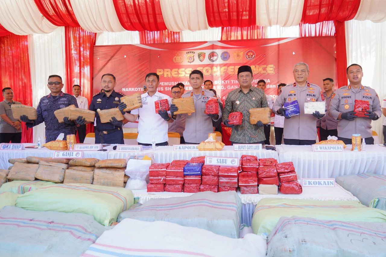 Bupati dan Kapolres Gayo Lues Ikut Musnahkan 1,3 Ton Ganja di Banda Aceh