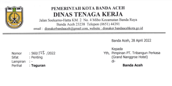 Tanggapi Surat Teguran Disnaker, Ini Jawaban Manajemen Grand Nanggroe
