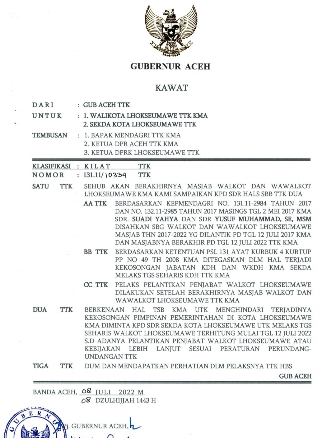 DPRK Lhokseumawe Usulkan Tiga Nama Calon Pj. Wali Kota