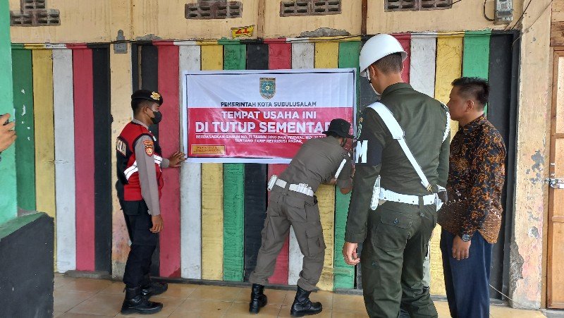 SUBULUSSALAM – Tim gabungan melibatkan unsur TNI, Polri, Subdenpom, Satpol PP dan WH Dinas Perhubungan dan BPKD Kota Subulussalam melaksanakan penyegelan dan penutupan sementara sejumlah lapak kios yang tidak membayar pajak, Kamis, 23 Juni 2022.