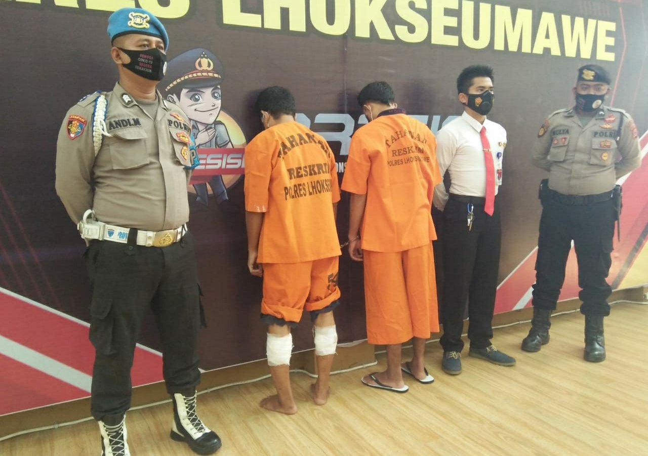 Kapolres Lhokseumawe AKBP Eko Hartanto, saat konferensi pers di Mapolres setempat, Senin, 30 Agustus 2021, mengatakan kedua tersangka yang ditangkap itu berinisal MYS (29), warga Kabupaten Bireuen, dan ND (42), warga Kecamatan Karimun, Kepulauan Riau.