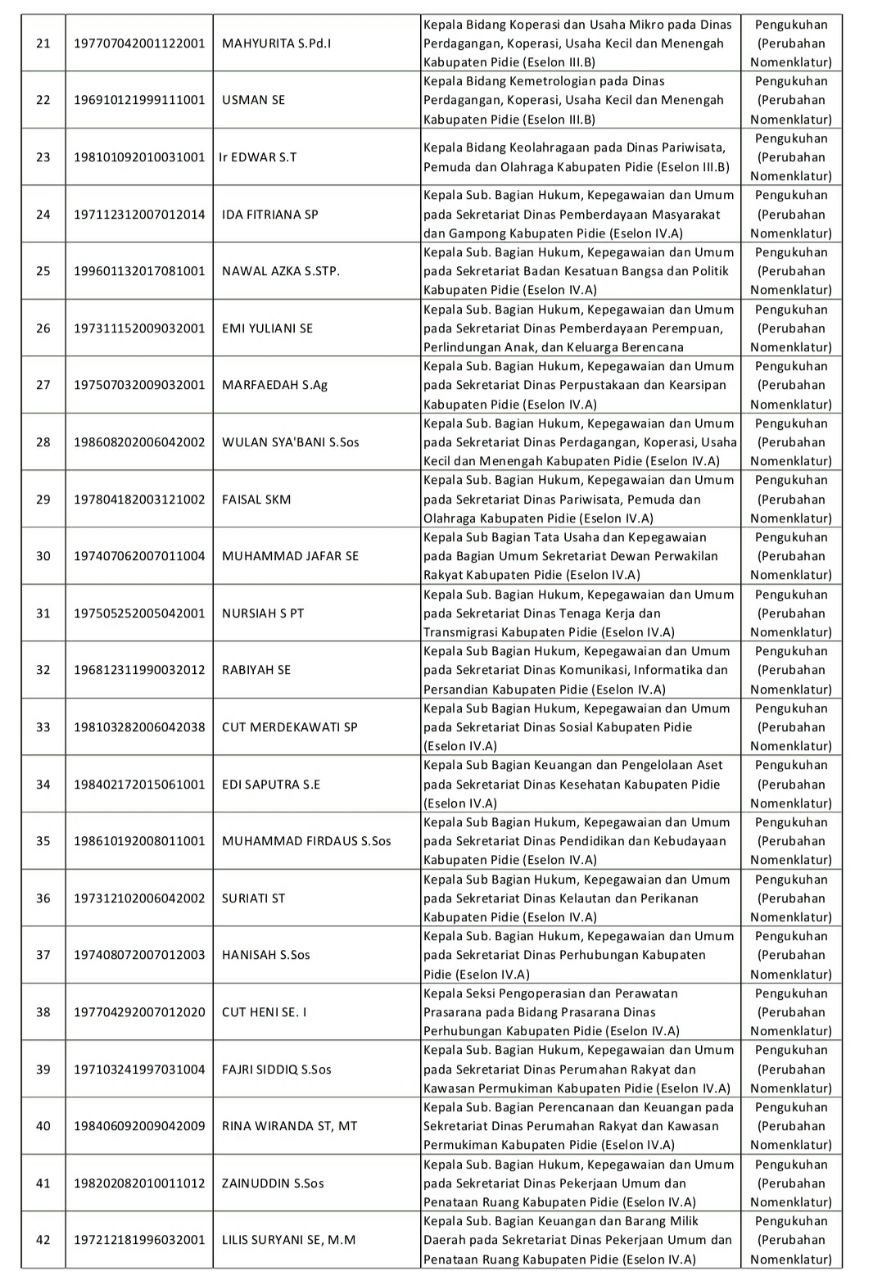 Berikut daftar nama para pejabat yang dikukuhkan oleh Wabup Alzaizi: