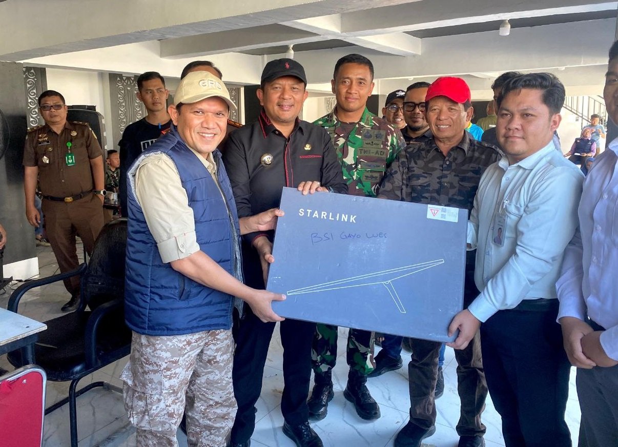 Dalam kunjungan itu, Wagub menyerahkan bantuan Satelite Starlink kepada pihak Bank BSI Cabang Blangkejeren, bantuan makanan siap saji, obat-obatan, roti, pembalut, biskuit, pakaian, kopi saset, dan logistik lainnya.