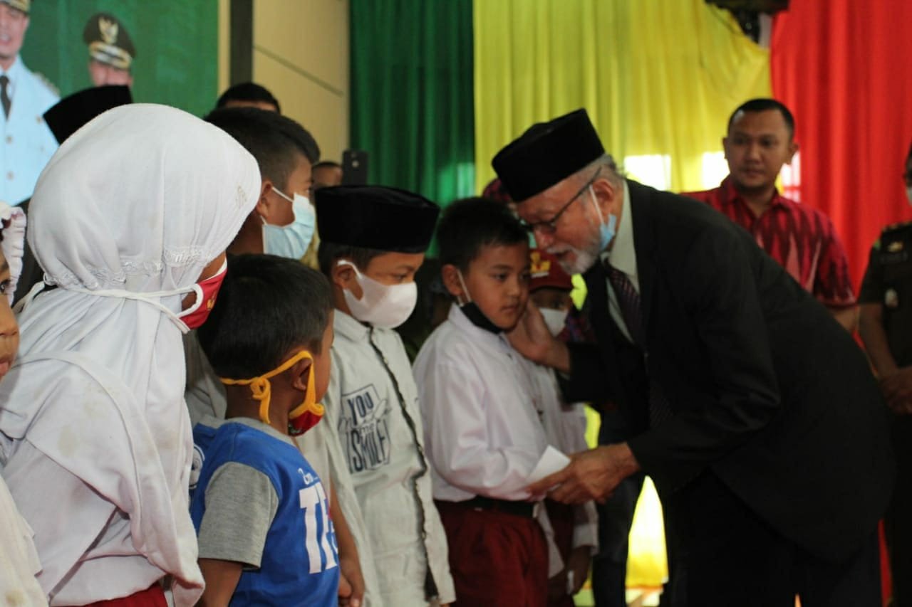 Pada kesempatan tersebut, Wali Nanggroe turut menyerahkan santunan secara simbolis kepada puluhan anak yatim di Gayo Lues.