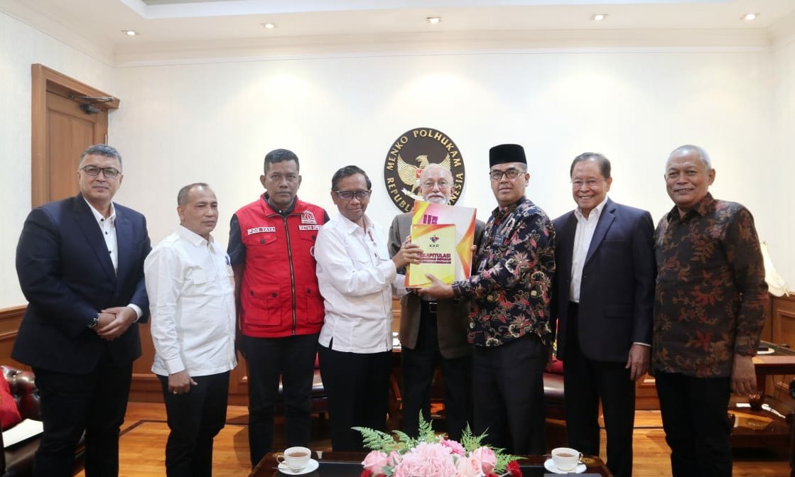 JAKARTA – Wali Nanggroe Aceh Paduka Yang Mulia Tgk. Malik Al Haythar menyerahkan data lima ribu kasus pelanggaran HAM yang terjadi di Aceh kepada Pemerintah Pusat melalui Menkopolhukam Mahfud MD, Kamis, 2 Maret 2023, di Jakarta.