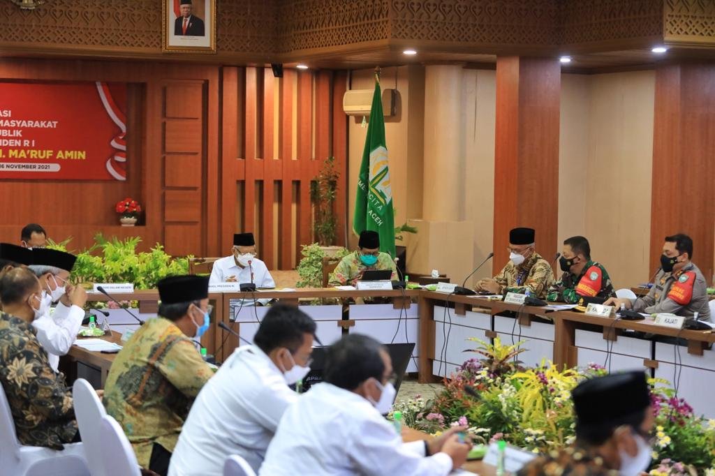 Sementara itu, Gubernur Aceh dalam laporannya yang disampaikan Sekda Aceh, Taqwallah, mengatakan capaian vaksinasi Aceh sudah berada pada posisi 34,5 persen per 15 November 2021. Jumlah tersebut meningkat dari 19 persen pada Agustus. Peningkatan tajam terjadi pada September sebanyak 6,3 persen, kemudian Oktober 5,9 persen dan per 15 November 2021 meningkat 3,5 persen.